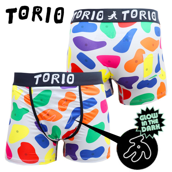 3色の大きなボーダー柄が素敵なメンズスタイル!カラフルなホルダーによく馴染んでクライミングの環境と一体感のあるスタイルですね。パンツの裾をすこしまくっていることで、動きやすさとファッション性を両立しています。普段着にも使用できるようなカジュアルな格好なので、ボルダリング初心者にもおすすめです!